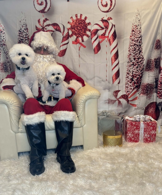 SNOWBALL and COCO are visiting with Santa to share their secret wishes!